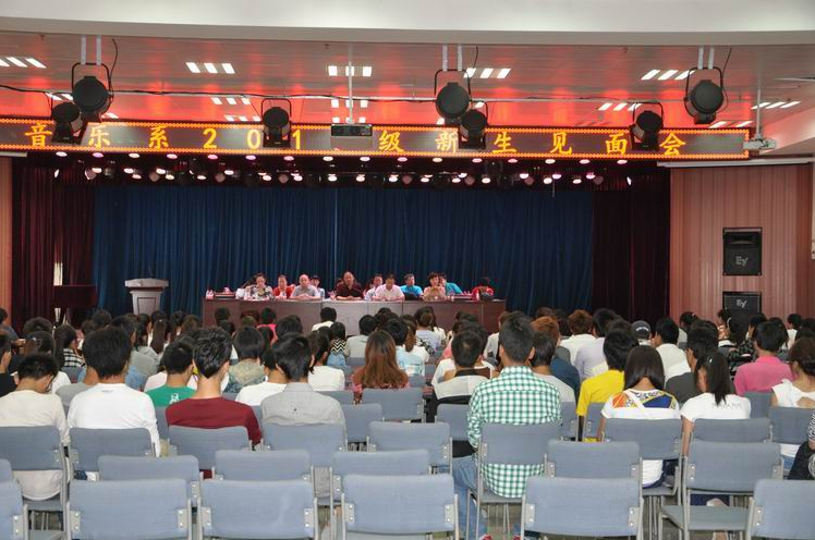 9月6日中午,音乐系2012级新生见面会在萃文厅举行。系党总支书记王三槐、副主任张世成、全系教师及2012级全体员工230人参加见面会。会议由辅导员翟书艺老师主持。