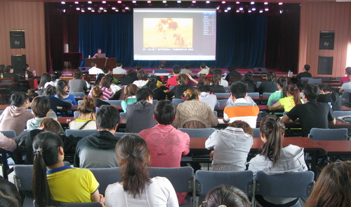 2011年5月12日下午,由校科技处与音乐系西北地方音乐文化研究所举办的“联大讲堂”之传统音乐系列讲座(一)——《裕固族民歌赏析与评述》在萃文厅举行,音乐系王采教授为全校近300名师生作了精彩的学术报告。