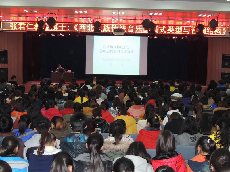 张君仁经理长期致力于西北汉族传统音乐的研究,克服重重困难,到身怀绝技的传承人身旁观察、访谈、记录、描述、解释,把民间艺术家的口述和活态表演变成一种“叙事文本”和学术资源,研究出了巨大成果。此次报告为音乐系师生了解、学习西北汉族传统音乐提供了一个很好的机会,受到了全场师生的热烈欢迎。