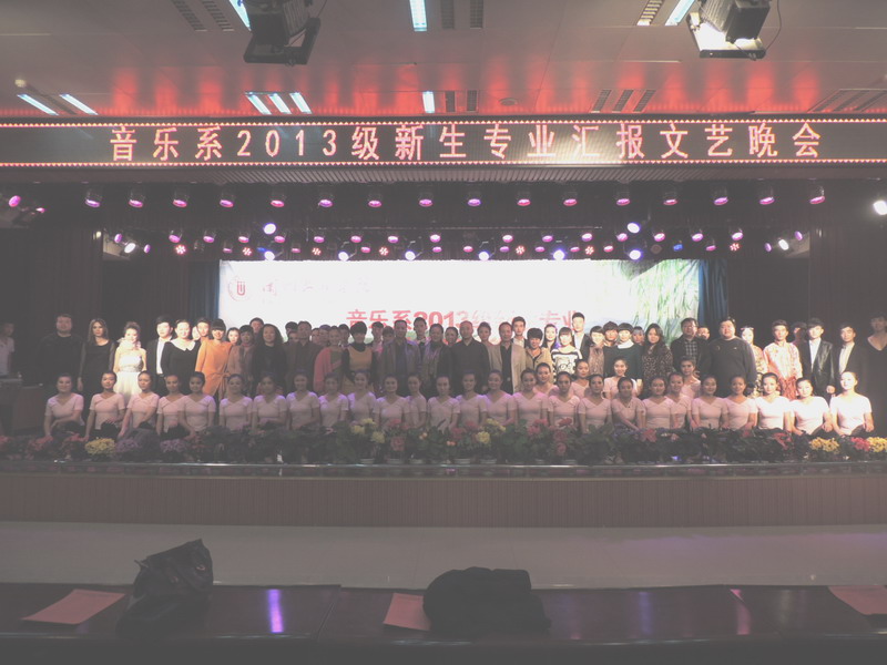 2013年10月17日晚上7:30,音乐系2013-2014学年第一学期艺术实践系列活动之二----音乐系2013级新生专业汇报文艺晚会在思源楼萃文厅举行,音乐系党总支书记王三槐、系主任王采、系副主任张世成和音乐系500余名师生观看了音乐会。