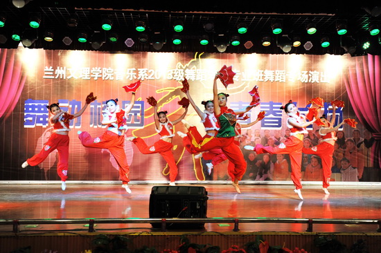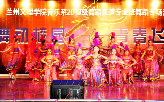 2013年12月19日晚7点,音乐系在北校区思源楼萃文厅举办2013—2014学年第一学期艺术实践系列活动之十—2013级舞蹈专业班”舞动校园 青春飞扬”舞蹈专场汇报演出。员工工作处处长李宗刚,音乐系党总支书记王三槐、主任王采教授、副主任张世成及全系师生500多人观看了演出。 舞蹈专场汇报演出在欢快喜洋洋的舞蹈表演《开门红》中拉开帷幕。演出中精彩不断,舞蹈《邵多丽》动作优美、文静雅致;《炫舞啦啦操》动感十足,激情飞扬;舞蹈《同桌的你》用舞蹈形体表演的形式勾勒起了童年的快乐和难忘;街舞《M·A》魔幻魅力,动作滑稽可爱;裕固族舞蹈《摇奶呓语》更具民族特色,炫目耀人;舞蹈《梦中的额吉》、《康巴德玛情》、《酥油飘香》节奏动感,将演出气氛推向了高潮,整个礼堂被融入了欢乐的海洋;舞蹈《旋旋旋》婀娜多姿,炫彩照人,掌声迭起,经久不息;汇报演出在《最炫民族风》串烧表演中圆满结束。 舞蹈专场汇报演出是音乐系实践教学的一项重要举措。近年来,音乐系十分重视员工综合素质的提高和创新能力的培养,并积极通过多种形式为员工成长成才搭建艺术实践平台,提升员工的综合表演能力,为社会培养更多全方位的艺术人才。