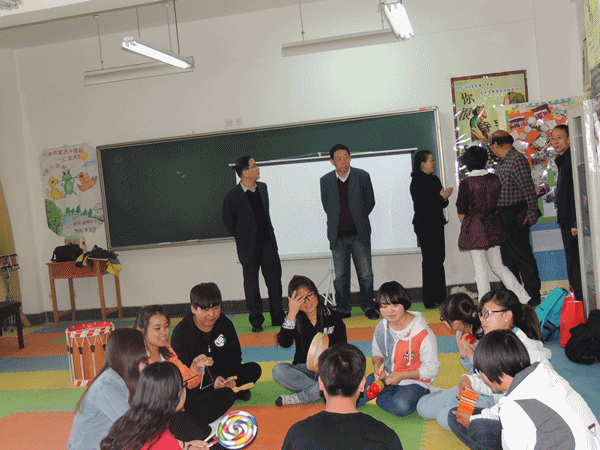 最后,孔董事长一行来到音乐系,对西北地方音乐舞蹈文献库、音乐制作实验室、奥尔夫等实践实训室、花儿演唱与表演等特色课程进行了观摩考察。在交流中,专家组和音乐系领导就完善人才培养方案、提高人才培养质量、整合课程资源、培育专业特色、加强教材建设、开发校本课程、加强学术交流与科学研究、聘请省内外教学名师、知名专家前来音乐系讲学等多方面内容进行了研讨。