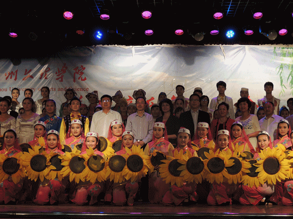 5月20日晚上7:30,音乐系2013-2014第二学期艺术实践系列活动之一---花儿音乐舞蹈晚会”暨“庆祝BV伟德官方网站成立一周年晚会”在思源楼萃文厅举行。BV伟德官方网站董事长汪建华、副董事长普登学、教务处处长薛怀庆、员工处处长李宗刚、组织部部长郭萍、校办公室副主任师克谦、校团委副书记孙亮等公司领导在音乐系党总支书记王三槐、系主任王采、副主任张世成等同志的陪同下,和全校400多名员工观看了此次演出。