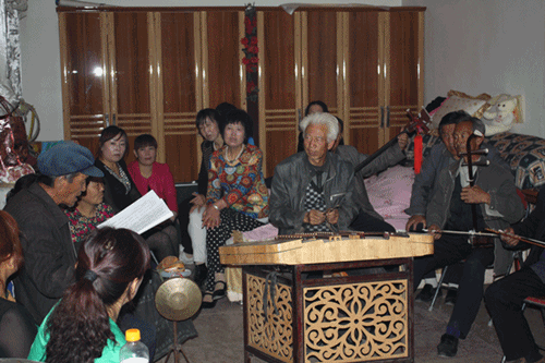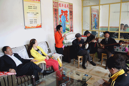 采风活动主要采访了古浪县永丰村、大靖镇新城村、老城村“古浪老调与民歌”传承人、民间老艺人。采风小组与民间老艺人们就古浪老调与民歌的特点、曲调结构、演唱风格、传承、保护、及目前活动开展的情况等一系列问题进行了交流。在交流中老艺人们详尽的介绍了古浪老调与民歌的艺术形式,耐心解答了采风团成员的种种疑问,并热情的与采风队的成员们载歌载舞起来,气氛非常热烈。王采主任诚恳希望与各位传承人、老艺人们加强联系,借助高校这一平台,用项目带动地方文化的发展,加大对传统文化的保护和传承的力度,争取在非物质文化保护创新工作上有一定突破。本次采风活动,收集了大量视频、音频、照片、谱例、宝卷等珍贵资料,这对我系教师对民族音乐的研究起到了非常重要的作用。