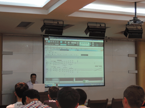 张世成副教授多年来主要从事电脑音乐制作、录音艺术等课程。主要从电脑音乐的发展、电脑音乐对传统音乐教育模式的冲击与影响以及电脑音乐在高等音乐教育领域的应用与突破方面做了大量讲解与示范,提出了很大胆的设想和利用现代电子技术进行公司产品改革的设想和前瞻性分析,并受到在场全体师生的热烈欢迎和一致好评!