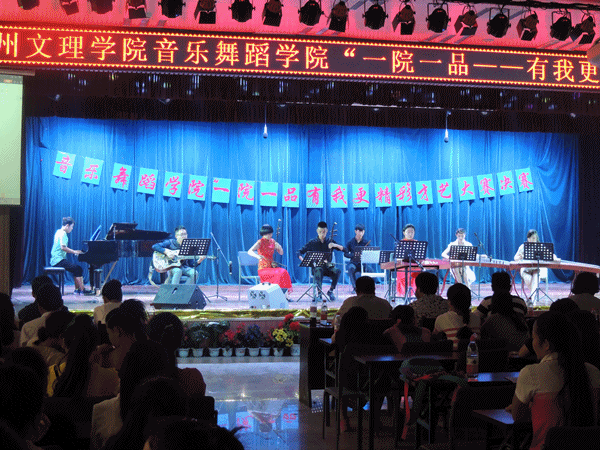 首先进行的是器乐组比赛,由2013级音乐表演2班带来的民乐合奏《彩云追月》拉开了序幕。接着舞蹈组、声乐组的选手依次上场,选手们激情魅力的表演将大赛一次次推向高潮。经过紧张激烈的竞争,最终器乐组余武东、舞蹈组朱建鹏、声乐组张铂赢得了评委的认可,获得本次比赛的冠军,亚军分别是民乐合奏《美丽的神话》、谢悦、王科锋、陈刚刚,季军是民乐合奏《彩云追月》、冯辰维震、芮旭东、得庆草、孙启超。