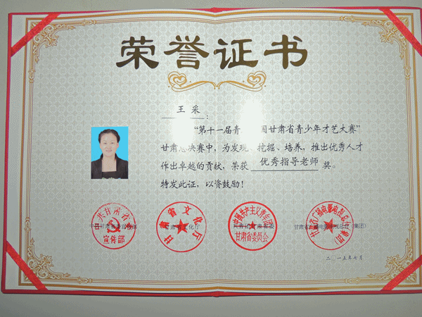 在甘肃省委宣传部、文化厅、团省委、甘肃广电总台举办的“美丽甘肃•一城一品”第十一届青春中国——甘肃省青少年才艺大赛总决赛中,赵静副教授在声乐美声唱法比赛中荣获一等奖、王采教授在音乐制作类比赛中荣获三等奖;王采教授、闵晓惠老师、陈新平老师、赵静老师、朱瑾老师荣获优秀指导老师奖。在此,向以上老师取得的优异成绩表示祝贺!
