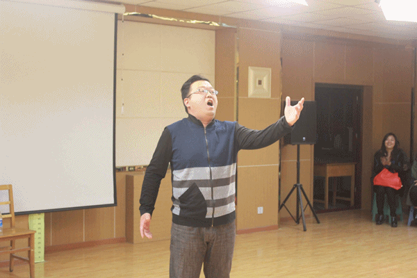 熊晖先生从歌剧的概念、舞台人物形象的介绍、自身塑造的不同的歌剧人物形象,如歌剧《原野》中懦懦无为的焦大星、《江姐》中游击队长蓝胡子、《貂蝉》中老谋深算的司徒王允等等,从角色的刻画、唱腔的表演、舞台的表现等方面向同学们做了详尽的介绍, 生动形象的将剧中的人物搬到了同学们的眼前,并与同学们进行了互动,现场气氛非常活跃。最后,熊晖先生以一首意大利民歌《我的太阳》结束了本次音乐沙龙活动。