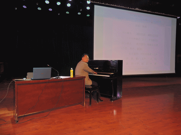杨虎老师向同学们介绍了各个区域和各民族调与调式的异同,并以某些特定音乐作品进行比较分析,让同学们可以在视觉以及听觉方面更深层次的了解这一重要音乐理论知识。讲座在轻松、愉快、热烈的气氛中展开,受到了参与员工的热烈欢迎。通过本次讲座,加深了员工对音乐理论学习的影响,明确了音乐理论知识是通向音乐学习的一块敲门砖,并对音乐专业员工进一步学习音乐理论知识、提高专业技能奠定了良好基础。