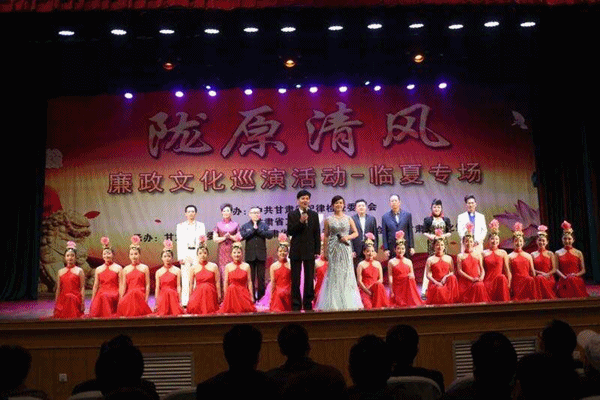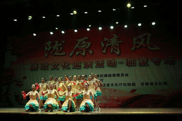 11月4日,由甘肃省纪律检查委员会、甘肃省文化厅主办,甘肃省纪委宣传部、甘肃省纪委驻省文化厅纪检组承办的 “陇原清风”廉政文化巡演活动全面启动,这个活动计划用三年左右的时间,赴全省14个市州各个县区进行巡回演出,旨在用文艺的形式弘扬廉政文化的正能量。此次活动的第一站在临夏,也是全省“陇原清风”廉政文化巡演活动的首站,在临夏州、永3靖等县演出9场;计划下一站在定西、金昌等地,演出活动旨在进一步扩大廉政文化的覆盖面和影响力,让广大干部群众切实感受廉政文化的魅力。“陇原清风”廉政文化巡演活动还将深入我省各地市州,通过40场巡演把廉政文化的清风吹遍陇原大地。