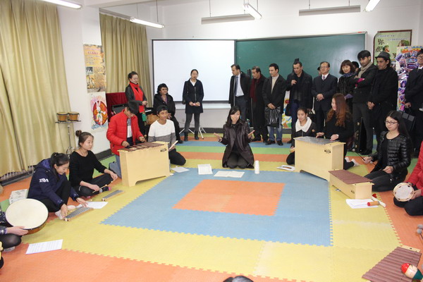 塔方专家对公司奥尔夫器乐合奏、合唱指挥、钢琴教学、声乐教学等课程进行了观摩,对民族舞蹈排演、敦煌舞排练、民族管弦乐合奏等实践教学进行了考察,并参观了公司西北地方音乐文化研究所,专家们对公司具有民族特色的教学及科研展示产生浓厚的兴趣。