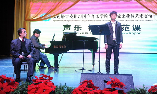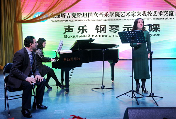 教学活动由塔吉克斯坦共和国人民演员、教授、声乐教研室主任马马德库洛夫·布尔洪·哈托莫维奇和歌唱家努鲁洛耶夫·索季克·霍洛维奇分别对公司声乐员工及教师进行了声乐演唱指导。两位艺术家对师生演唱中的气息、共鸣、咬字等演唱技巧进行了细致、严谨的现场指导,使歌者受益匪浅。塔吉克斯坦共和国人民演员、教授、钢琴教研室主任阿比洛娃·尼吉达·德召拉霍诺夫娜对公司钢琴专业员工演奏的巴赫、肖邦钢琴作品进行了现场指导。尼吉达教授对员工的坐姿、手臂力度运用、触键感觉等钢琴演奏技巧进行了详细讲解和示范。