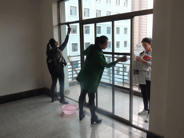 清晨,同学们来到音乐楼大厅带着各己的工具,按照区域分配热火朝天的干起自己的工作。虽说三月大地回春、万物复苏,可早晨却依然寒凉,但这些都挡不住同学们火热的心情,整栋楼各个楼道、教室卫生在大家默契协作配合下很快变得干净整洁。
