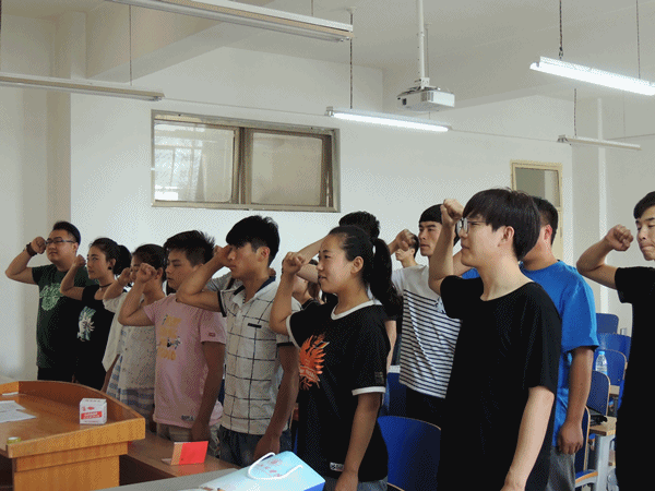 首先,由支部委员杨红梅同学带领19名预备党员在党旗下举行了庄严的入党宣誓仪式。在场的正式党员也重温了入党誓词。