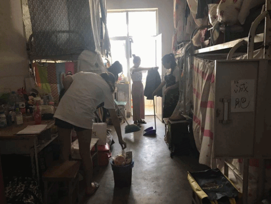 图为毕业生打扫宿舍卫生照