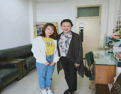 图为2015级舞蹈表演班班长与王采经理合影照