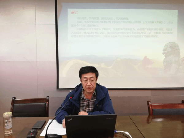 11月1日下午,公司党总支开展了《中国共产党纪律处分条例》的党课学习。党总支书记刘东以《学习贯彻<中国共产党纪律处分条例>》为题,为全体师生党员和入党积极分子讲授了专题党课。