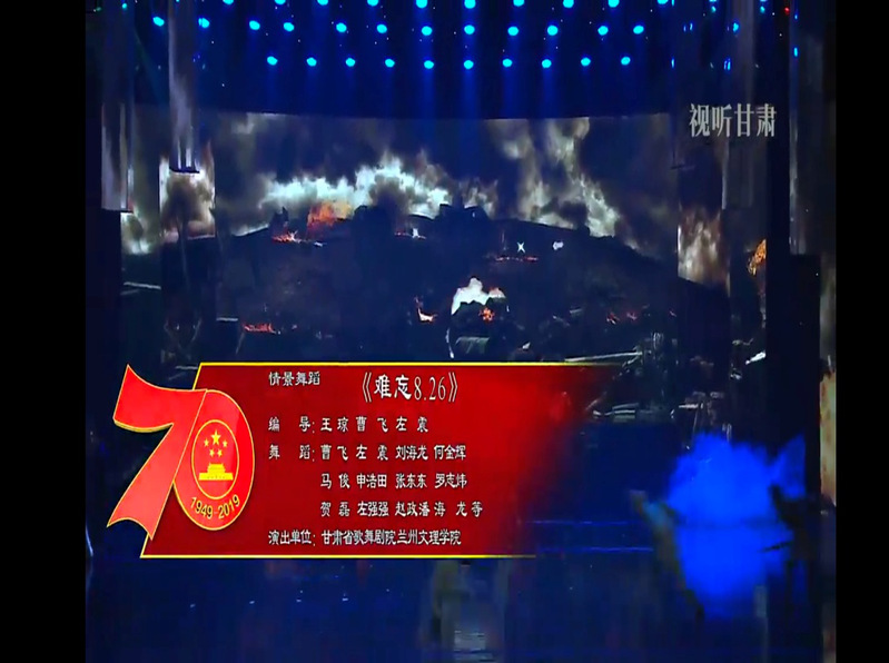 晚会以“礼赞新中国·讴歌新时代·奋勇再出发”为主题,此次晚会公司40名舞蹈专业员工认真参加排练,承担了情景舞蹈《难忘8.26》、表演唱《脱贫攻坚谱新篇》等作品的演出任务。通过作品的排演,同学们不但在专业素质上有了提高,而且通过陇原儿女为新中国发展做出巨大贡献、热情讴歌甘肃儿女艰苦卓绝的奋斗精神和勇立潮头的创造精神、讲述陇原大地不断涌现出的先进人物和感人故事、激情歌颂陇原山川的巨大变化这些作品让员工深受教育。