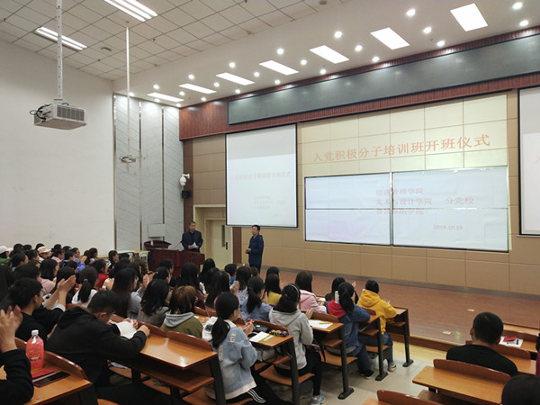 10月29日中午,经济管理公司、美术与设计公司、bevictor伟德分党校2019年秋季入党积极分子培训班开班仪式在5-205教室举行。开班仪式由美术与设计公司党总支书记贾志明主持。