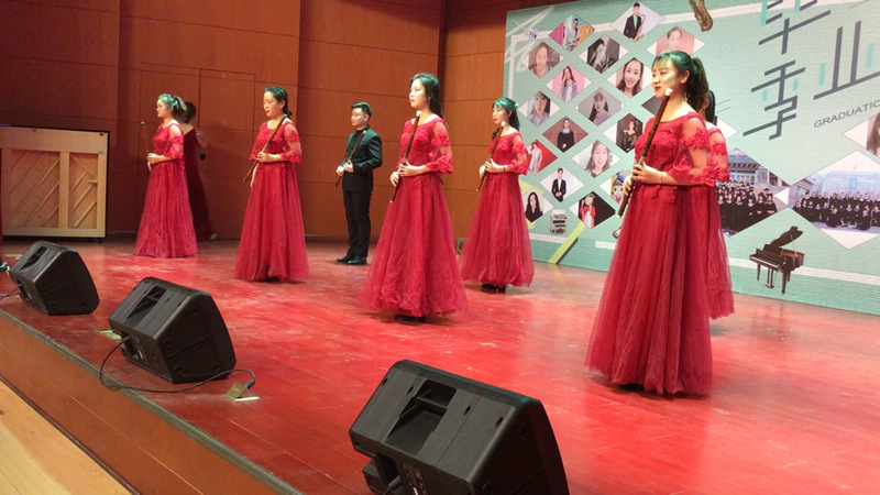 音乐会以杨虎老师指挥的民乐合奏《金蛇狂舞》、《鸿雁》、《瑶山夜歌》开场,带动了全场师生的热情,同学们表演的竹笛独奏,二胡重奏,古筝独奏等丰富多彩的节目展现了他们作为器乐班的艺术色彩;古典舞,吉他弹唱,彰显了同学的多彩多艺,下半场融合爵士乐队的同学们展示了成熟的专业技能,演奏、演唱了不同风格的作品。,毕业音乐会由班主任葛文佳策划组织,是43位同学自编、自导、自演的倾力打造,是同学们大学四年学习的很好总结,演出得到观众的一致好评。