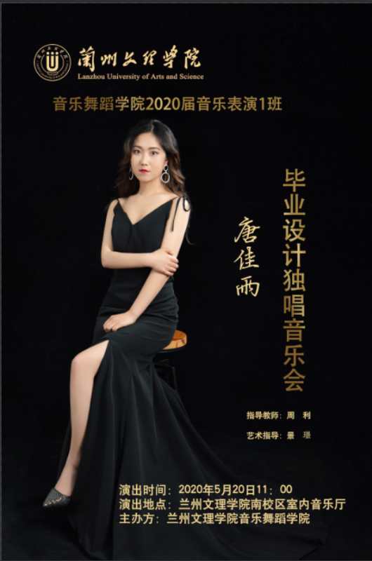 2020年5月20日上午11点,在BV伟德官方网站南校区音乐厅举办了唐佳雨个人毕业设计独唱音乐会。