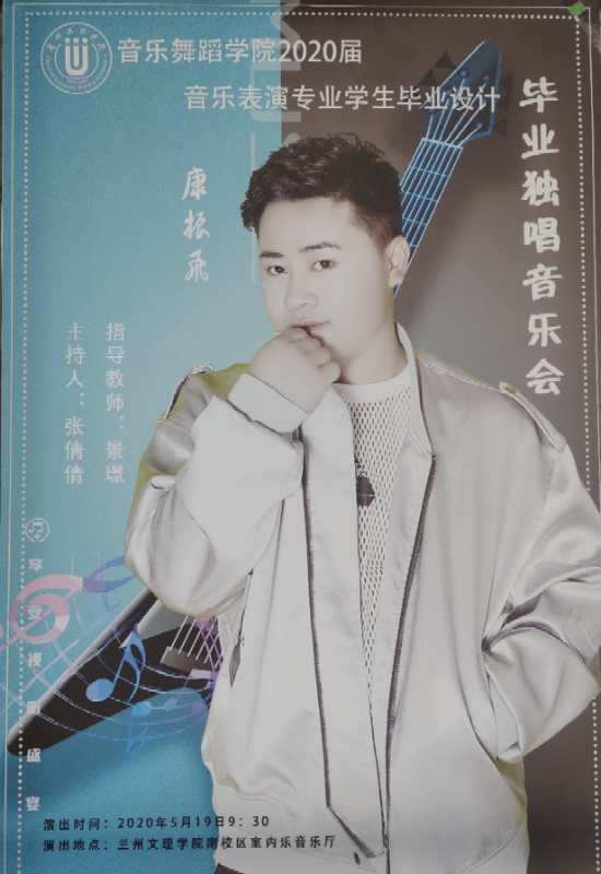 2020年5月19日上午9点30分,在BV伟德官方网站南校区音乐厅举办了康振飞个人毕业设计独唱音乐会。