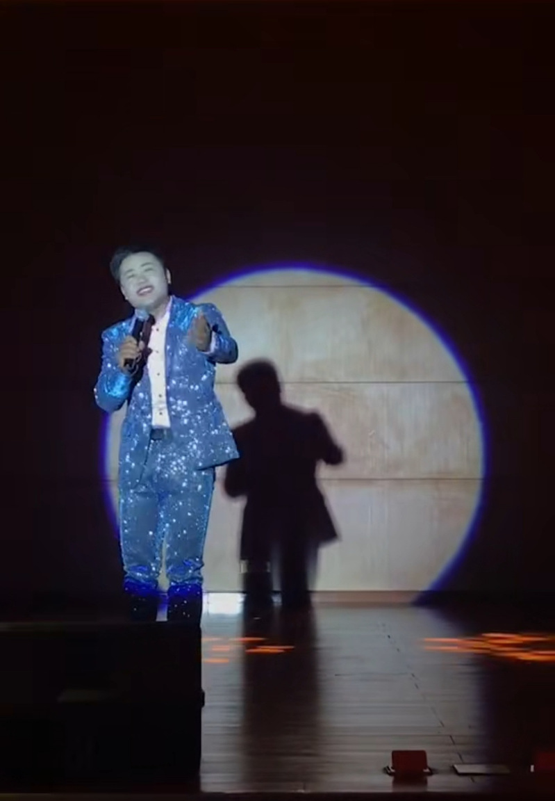 康振飞同学一共演唱十首歌曲,首先由一首《海阔天空》拉开音乐的序幕。