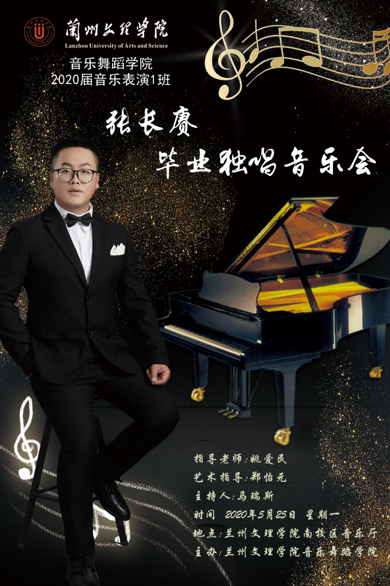 2020年5月25日上午8点,在BV伟德官方网站南校区音乐厅举报了张长赓个人毕业设计独唱音乐会。