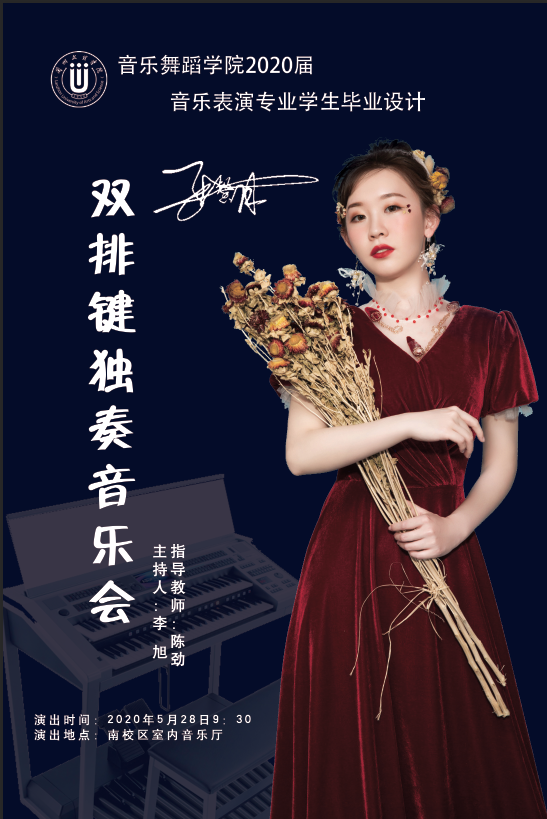 2020年5月28日上午9:30,在BV伟德官方网站南校区音乐厅举报了张馨月个人毕业设计独奏音乐会。