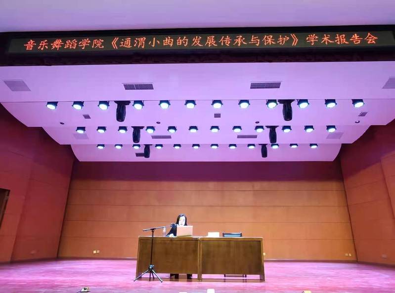 赵静副教授以通渭小曲的源流、流行地域和演唱形式入手,从小曲的演唱剧本、唱词结构、演唱技巧、调式、调性等方面系统的介绍了通渭小曲的风格与特色、传承发展与保护等多方面内容。讲座中穿插了通渭当地非物质文化遗产传承人精彩的演唱,赵静老师以历史故事的线索入手,阐述了通渭小曲的由来,以图文并茂的形式诠释了通渭小曲的特色与魅力。