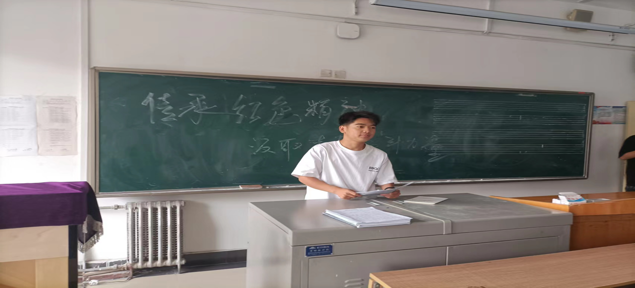 最后吕爱东同学以“传承红色精神,汲取青春奋斗力量”作主题演讲,他说我们是新时代的接班人,我们更应该努力,把爱国精神落实到身边的每一件事中。我们要传承先辈们的红色基因,努力学习,放飞梦想,为祖国建设添砖加瓦。