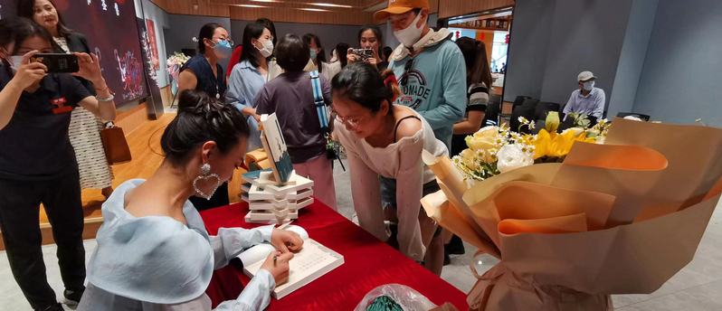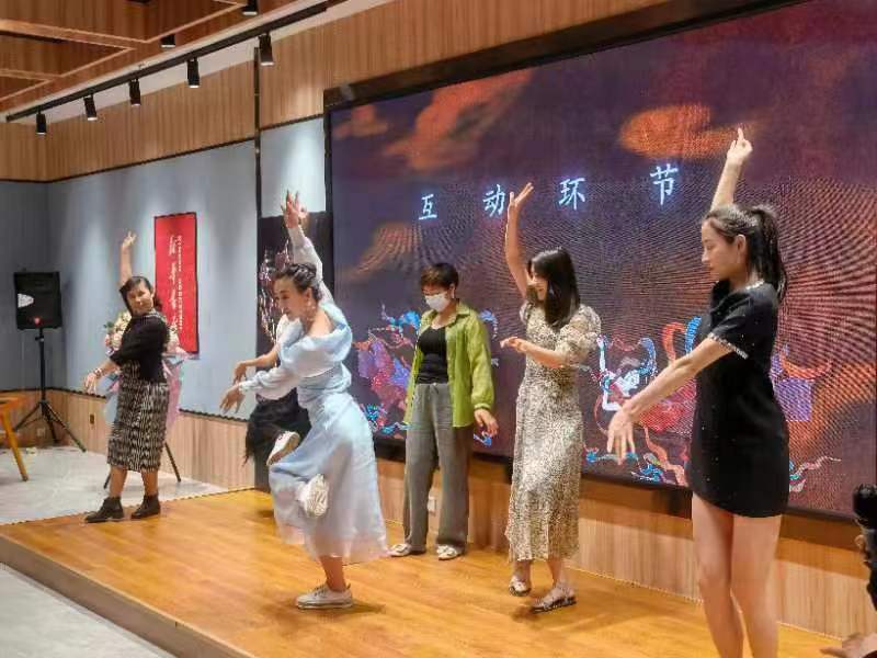现场还设计了互动环节,主编李莉现场教学,五位敦煌舞爱好者认真模仿,李莉老师还向参与互动的读者赠送了本书。在签售环节后,参演人员和广大读者与作者合影留念。