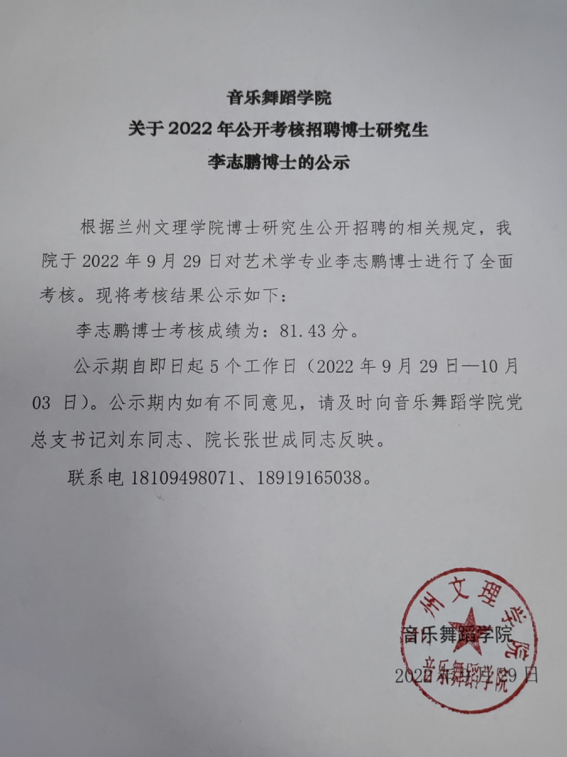 bevictor伟德关于2022年公开考核招聘博士研究生李志鹏博士的公示