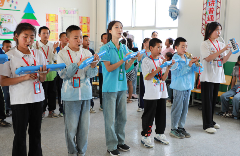 和袁郁郁同班的王欢欢,用一周时间,先后教会孩子们《夜空中最亮的星》《小城夏天》等近10首歌曲。不仅如此,她还主动选择与一名孩子同住。“虽然相处时间有限,但能把所学付诸实践,还能看到孩子们反馈,我自己的专业能力也提升了不少。”王欢欢一边写日志,一边总结收获。