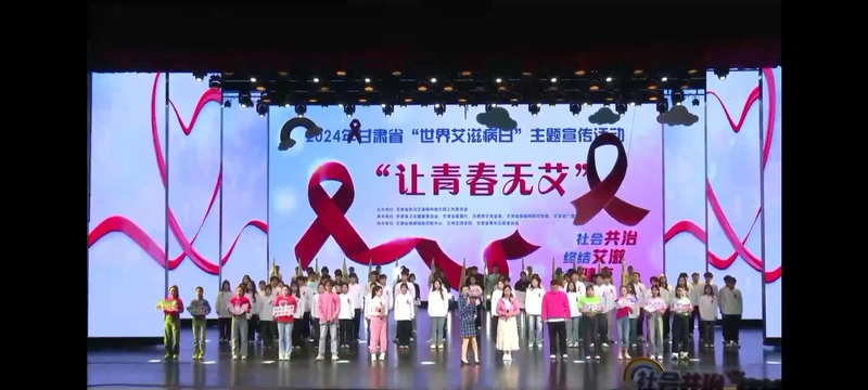 为深入学习贯彻习近平总书记关于艾滋病防治工作的重要指示批示精神,认真落实省委省政府工作部署,扎实推进青少年群体艾滋病防治工作,11月28日下午,由甘肃省防治艾滋病和地方病工作委员会主办,甘肃省卫生健康委员会、甘肃省教育厅、共青团甘肃省委、甘肃省疾病预防控制局、甘肃省广播电视总台承办的“让青春无艾”—2024年甘肃省“世界艾滋病日”主题宣传活动在BV伟德官方网站举办。本次活动通过公益宣传片、情景剧、防艾微讲堂、嘉宾问答、志愿者宣誓、公益歌曲等综合艺术表现形式,全方位、多角度向青少年科普艾滋病毒的现实危害、趋势和传染方式,深入阐释对艾滋病的预防、检测和治疗等方面知识。