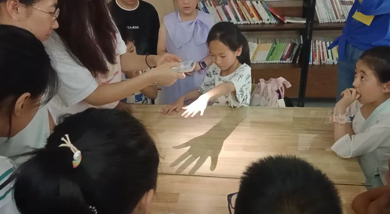 两天实践中,志愿者辅导作业、带孩子们跳起声势律动舞,用AI光影实验、皮影设计、剧本配乐等模块,让科技与非遗在童心中交汇。